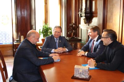 22 de diciembre de 2022. El nuevo presidente de Otea, Javier Martínez, acompañado por el vicepresidente ejecutivo, Fernando Corral, y por el presidente saliente, José Luis Álvarez Almeida, ha realizado esta mañana su primera visita institucional al Ayuntamiento de Oviedo, donde han sido recibidos por el alcalde, Alfredo Canteli.