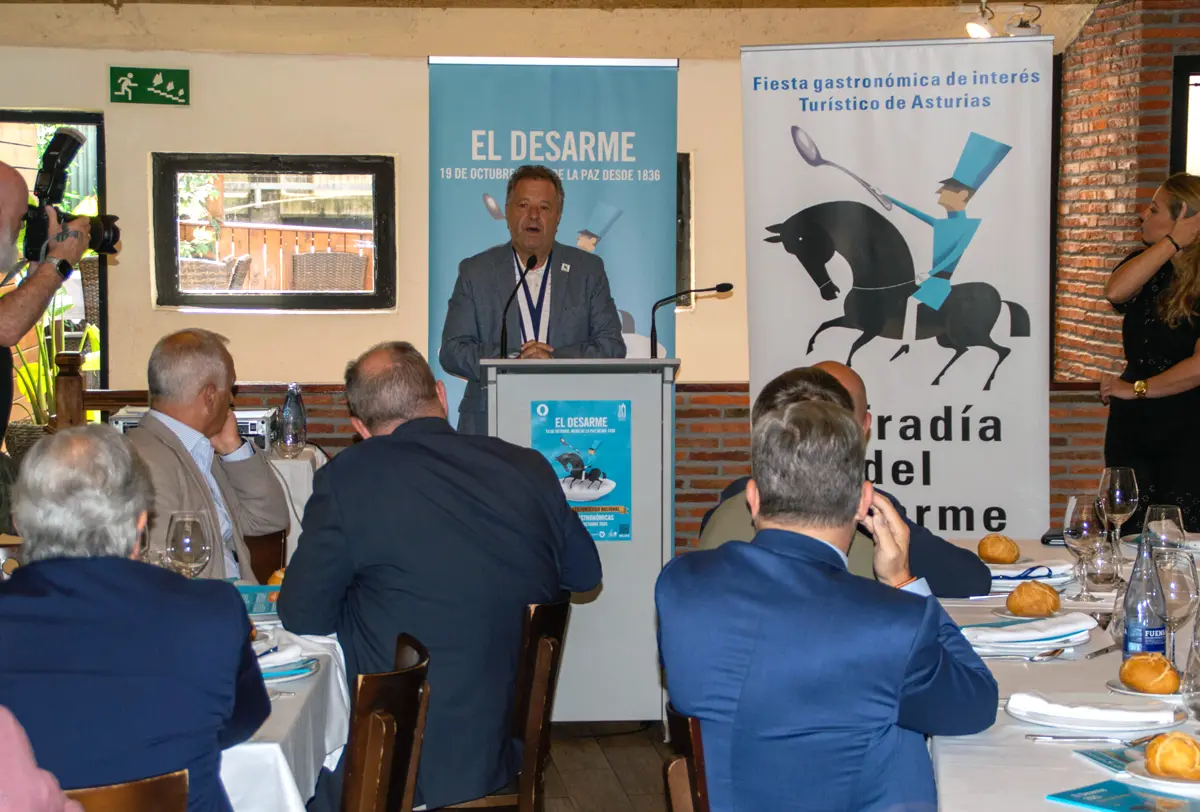 El restaurante Casa Félix, uno de los participantes, acogió la presentación, que reunió a un amplio elenco de autoridades y representantes institucionales. Durante el acto, el presidente de Otea y Hostelería de España, José Luis Álvarez Almeida, aprovechó para hacer un anuncio personal: dejará la presidencia de la patronal hostelera asturiana en las próximas semanas para centrarse exclusivamente en su cargo nacional. Almeida agradeció el apoyo de las instituciones y pidió que se continúe «trabajando por el Desarme», un guante que recogieron de inmediato las autoridades presentes.
